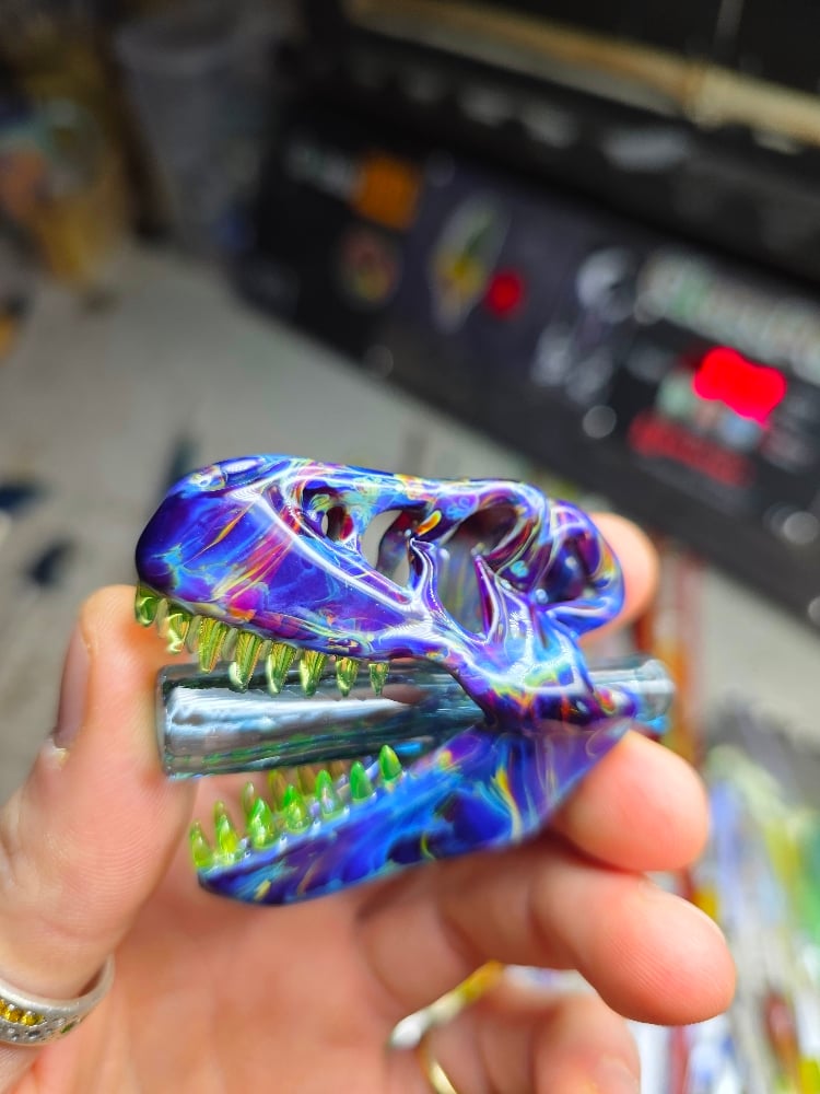 Double amber purple T-Rex skull joint tip pendant (uv reactive) 😤🦖☠️