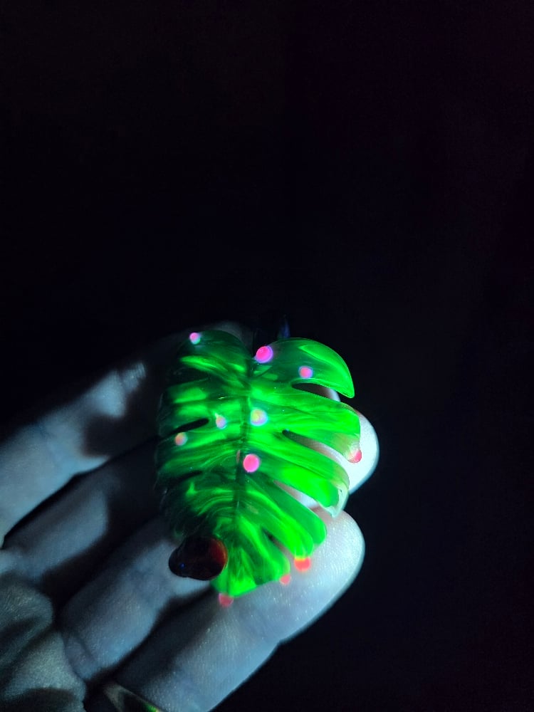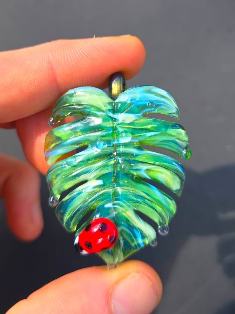 Drippy UV variegated monstera leaf with ladybug pendant. 🐞🌿