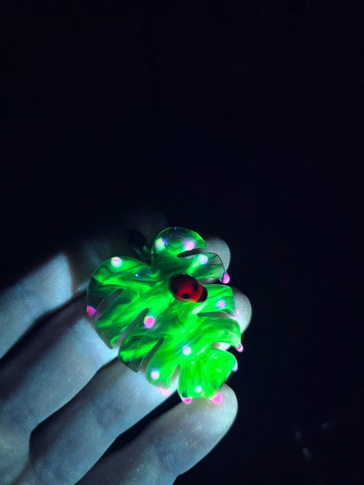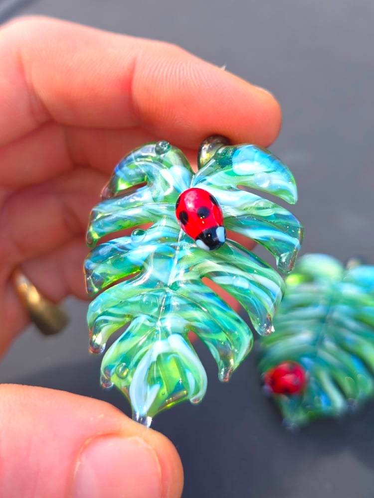 Drippy UV variegated monstera leaf with ladybug pendant.. 🐞🌿