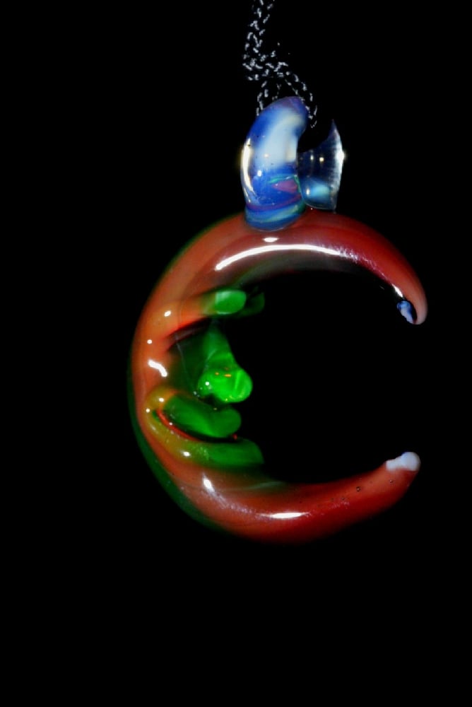 Uv reactive ruby Cresent moon pendant 🌜